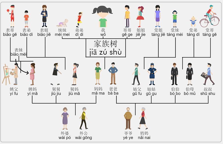 Below is a list of Chinese family names from ‘father’ to ‘great-granddaughter’ and also a list of terms that we, as foreigners might use to address certain people in China. You will also find some useful questions for asking a person’s name and how to respond.