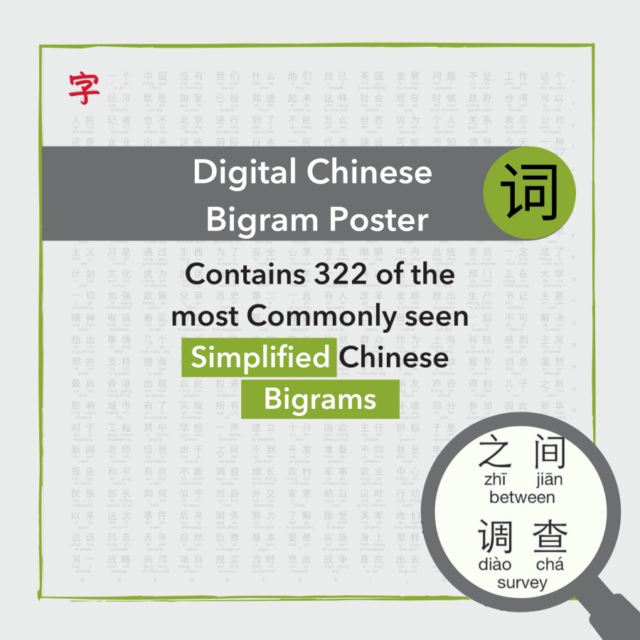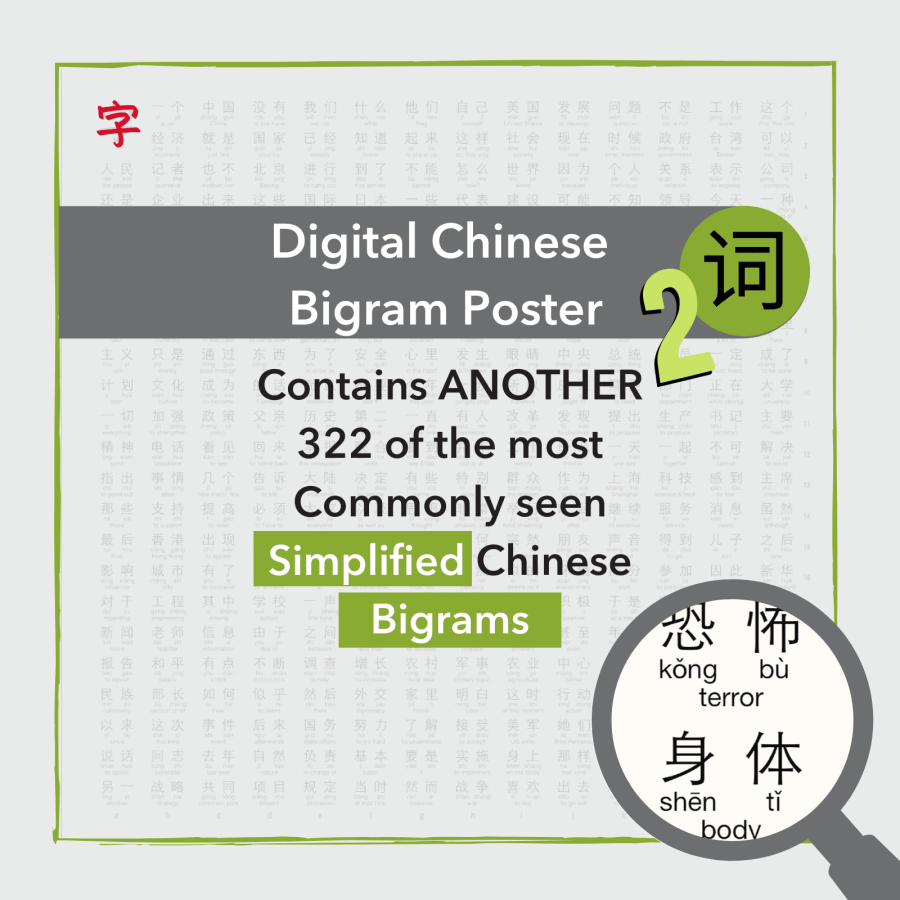 Track your progress studying Chinese words with our Digital Bigram Posters.