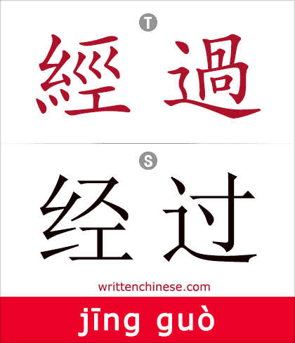 You can see the differences between the 经过 (jīng guò) in the image below. (see Bigram)