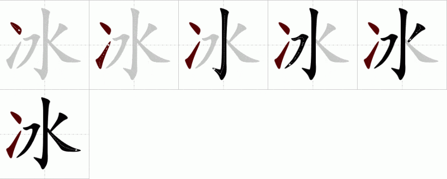 An upwards character stroke from bottom left to the top right, such as in 冰 (bīng):