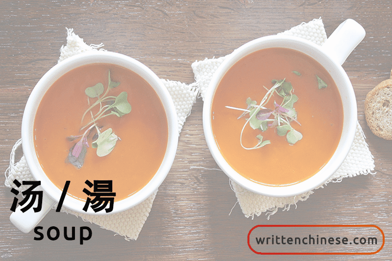 1. 汤 / 湯 (tāng) soup / hot or boiling water