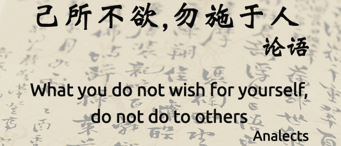“己所不欲,勿施于人。” – What you do not wish for yourself, do not do to others. (Analects 12.2, 6.30)