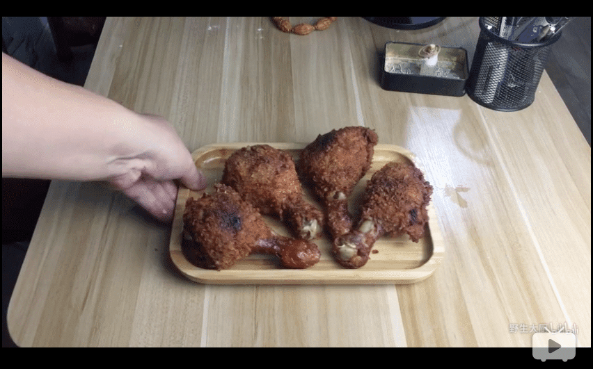 One of his popular videos is 对不起,老板!我又在办公室里炸了几根鸡腿,从此不去金拱门。 (duì bu qǐ, lǎo bǎn wǒ yòu zài bàn gōng shì lǐ zhá le jǐ gēn jī tuǐ, cóng cǐ bù qù jīn gǒng mén) Sorry boss! I fried chicken legs in the office again, and I will never go to McDonald’s)