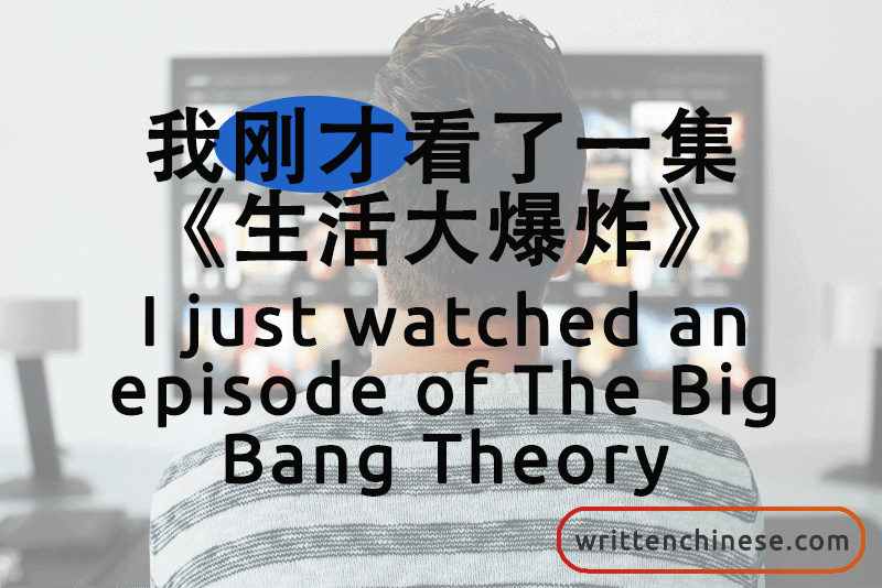 我刚才看了一集《生活大爆炸》。(wǒ gāng cái kàn le yī jí shēng huó dà bào zhà) I just watched an episode of The Big Bang Theory.