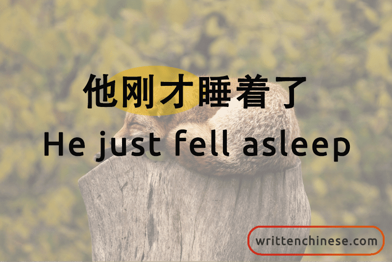 他刚才睡着了。(tā gāng cái shuì zháo le) He just fell asleep.