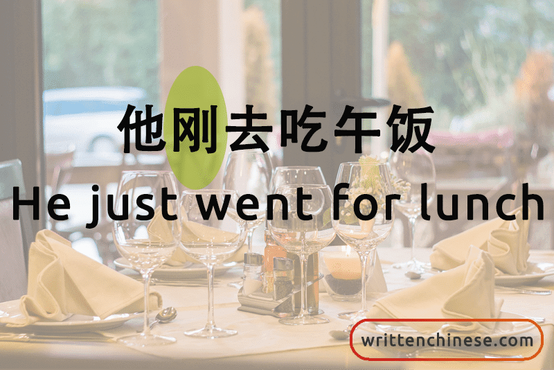 他刚去吃午饭。(tā gāng qù chī wǔ fàn) He just went for lunch.