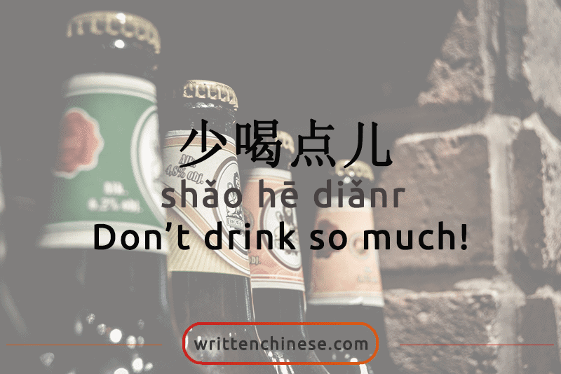 少喝点儿。(shǎo hē diǎnr ) Don’t drink so much!