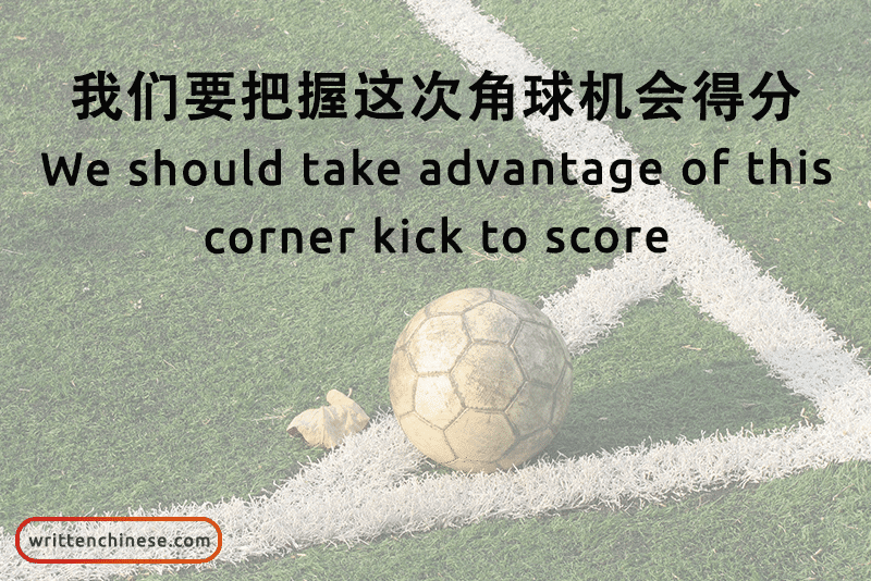 Example: 我们要把握这次角球机会得分。(Wǒmen yào bǎwò zhè cì jiǎoqiú jīhuì défēn) We should take advantage of this corner kick to score.