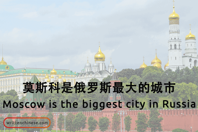 Example: 莫斯科是俄罗斯最大的城市。(mò sī kē shì é luó sī zuìdà de chéngshì) Moscow is the biggest city in Russia.