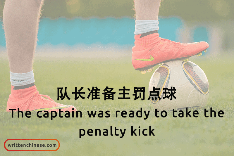 Example: 队长准备主罚点球。(Duìzhǎng zhǔnbèi zhǔ fá diǎn qiú) The captain was ready to take the penalty kick.