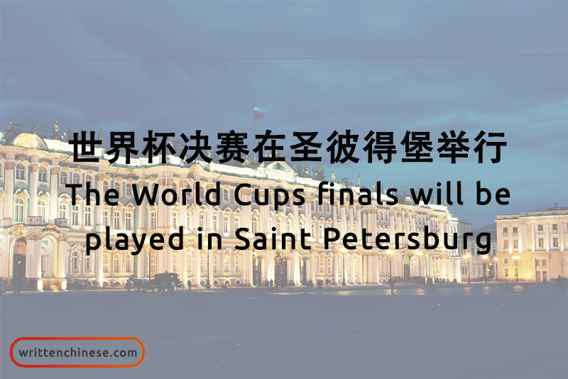 Example: 世界杯决赛在圣彼得堡举行。 (shì jiè bēi jué sài zài shèng bǐ débǎo jǔ xíng) The World Cup finals will be played in Saint Petersburg.