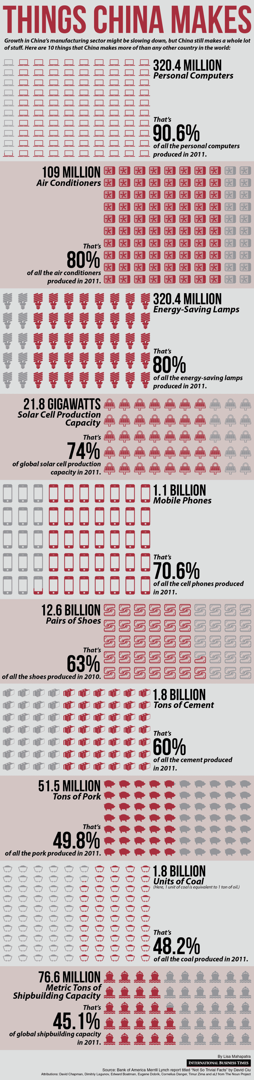 At the bottom of this article, you can check out an awesome infographic, originally from the International Business Times, that shows 10 things that Chinese manufactures more than anyone else in the world.