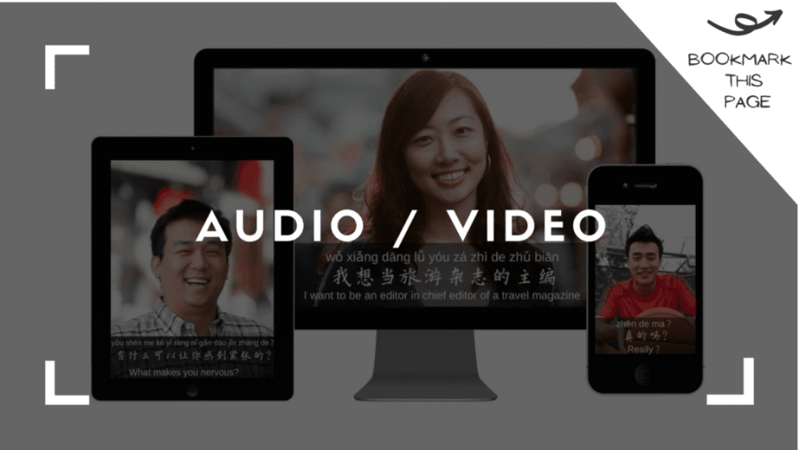 Welcome to our page of audio and video resources for learning Chinese! Here you can find an updated list of the best audio and video materials available for teaching you Chinese! Please remember to bookmark this page and check back frequently as we often find new materials for you to make your Chinese learning more efficient and more fun!