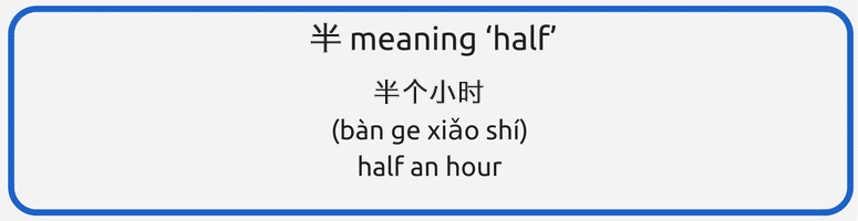 When indicating x hours and a ‘half’, then place 半 (bàn) after 个 (gè).
