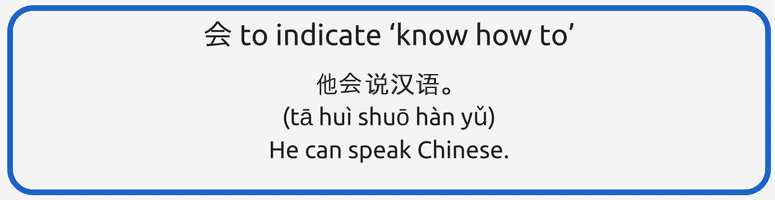 You can learn more about 会 (huì) and the other ways you can say ‘can’ in Chinese in our article, The 3 Cans: What’s the Difference Between 会, 可以 and 能?