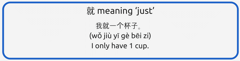 我就一个杯子。(wǒ jiù yī gè bēi zi) I only have 1 cup.