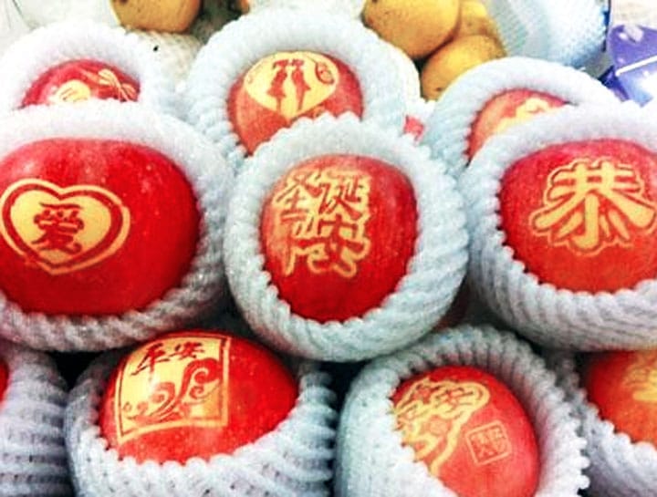 Chamcen also told me that in China, on Christmas Eve, Chinese people eat apples and often give apples as gifts. You may have noticed that the Chinese for Christmas Eve is 平安夜 (píng ān yè). The 平 (píng) is similar to the 苹 (píng) in 苹果 (píng guǒ – apple), but literally translated 平安 means safety and 夜 means evening.