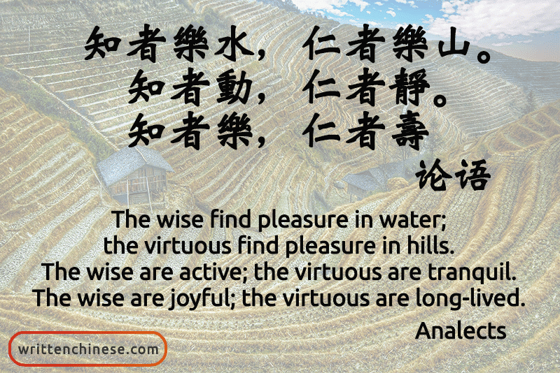 (zǐ yuē: zhī zhě lè shuǐ, rén zhě lè shān, zhī zhě dòng, rén zhě jìng, zhī zhě lè, rén zhě shòu.)