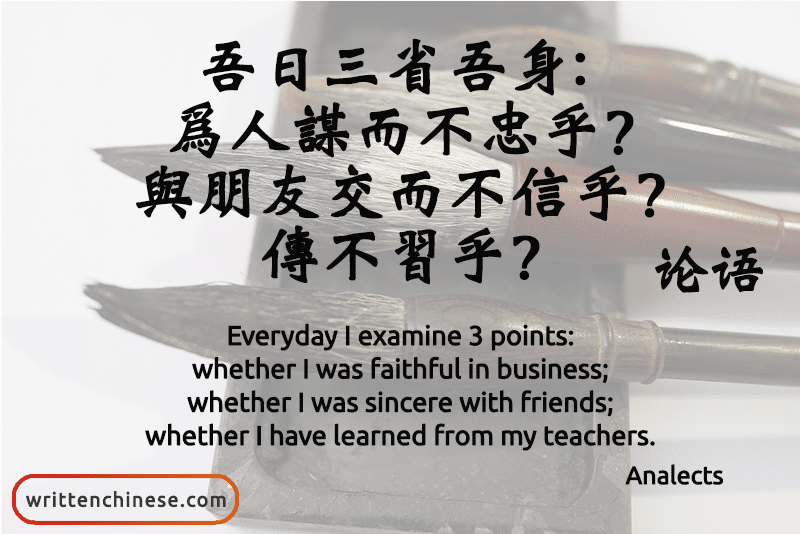 (zēng zǐ yuē: wú rì sān xǐng wú shēn: wéi rén móu ér bù zhōng hū? yǔ péng you jiāo ér bù xìn hū? chuán bù xí hū?)
