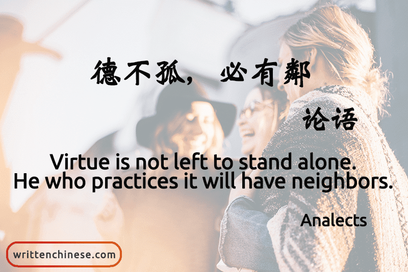 The Master said, “Virtue is not left to stand alone. He who practices it will have neighbours.”