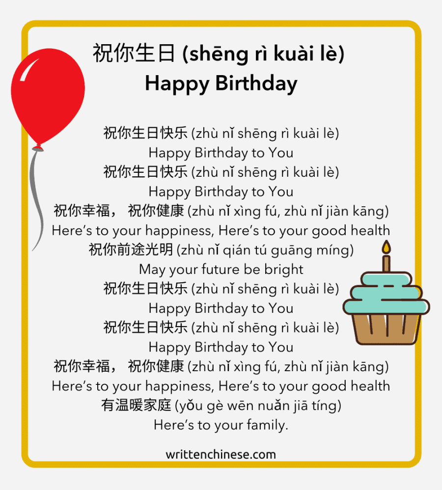 祝你生日 (shēng rì kuài lè) Happy Birthday