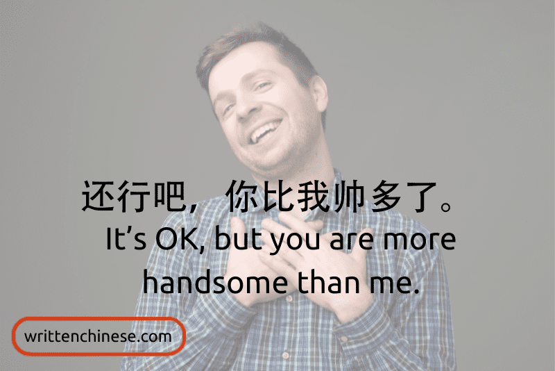 还行吧,你比我帅多了。(hái xíng ba, nǐ bǐ wǒ shuài duō le) It’s OK, but you are more handsome than me.