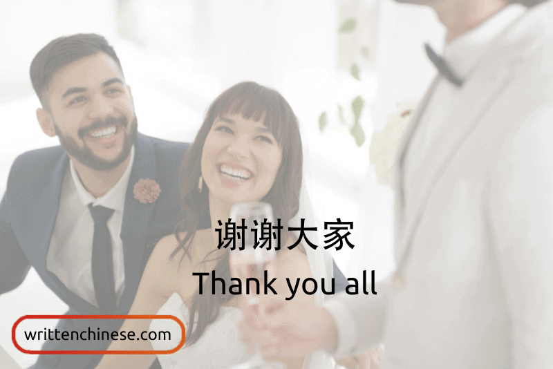 6. 谢谢大家 (xiè xie dà jiā) Thanks everyone / Thank you all