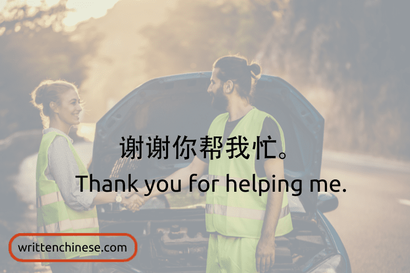 谢谢你帮我忙。(xiè xie nǐ bāng wǒ máng) Thank you for helping me.