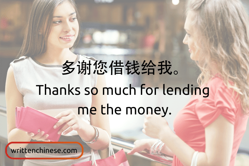 多谢您借钱给我。 Thanks so much for lending me the money.