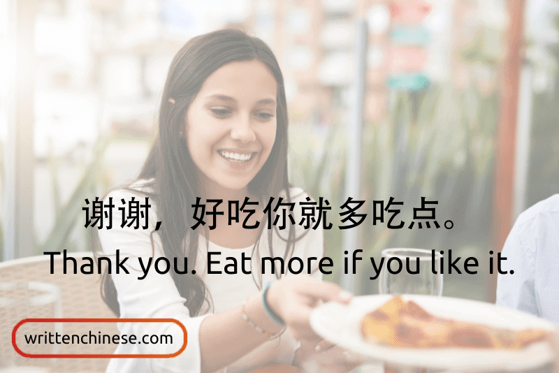谢谢,好吃你就多吃点。(xiè xie, hǎo chī nǐ jiù duō chī diǎn) Thank you. Eat more if you like it.