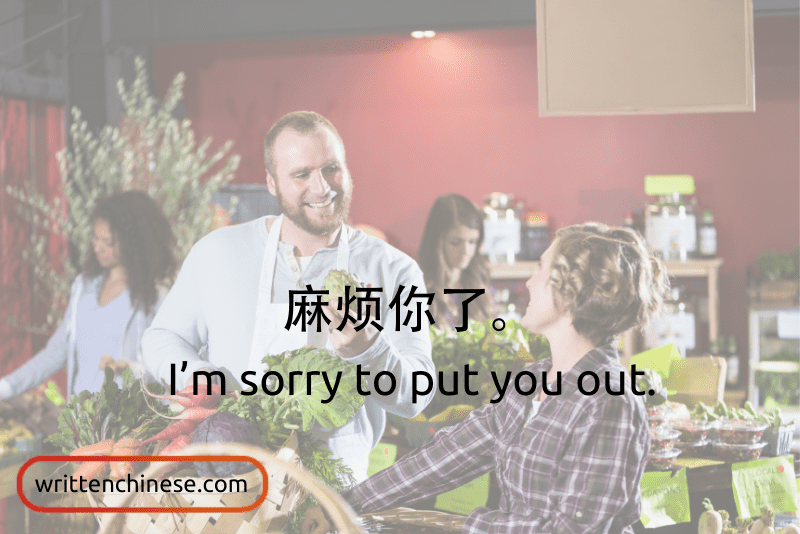 12. 麻烦你了 (má fan nǐ le) I’m sorry to put you out (I’m troubling you).