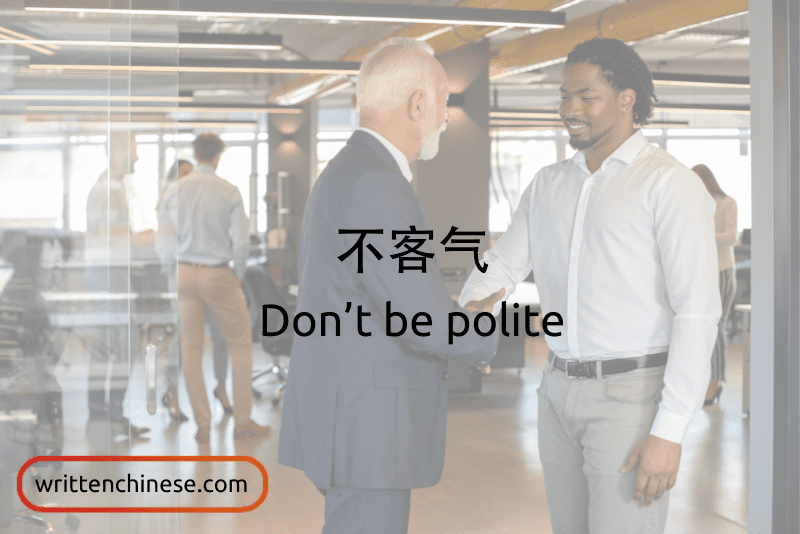 不客气。(bú kè qi) Don’t be polite.