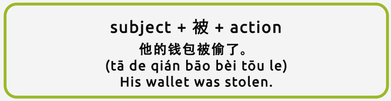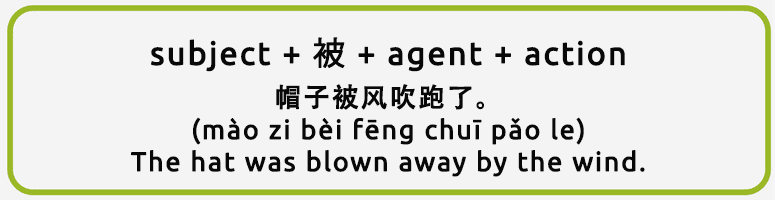 Sentences that include 被 are known as ‘被字句’ (bèi zì jù) and are used to show a passive voice.