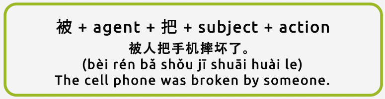 In this type of sentence, we can add 人 (rén) after 被, which means it is hard or impossible to tell the ‘doer’.
