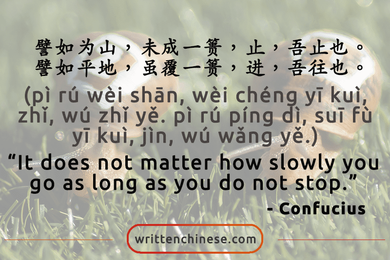譬如为山,未成一篑,止,吾止也。譬如平地,虽覆一篑,进,吾往也。