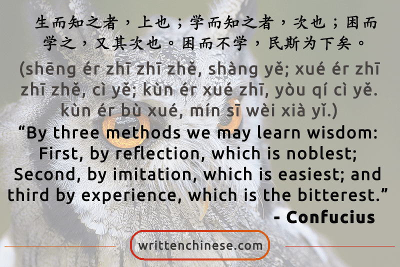 (shēng ér zhī zhī zhě, shàng yě; xué ér zhī zhī zhě, cì yě; kùn ér xué zhī, yòu qí cì yě. Kùn ér bù xué, mín sī wèi xià yǐ.)
