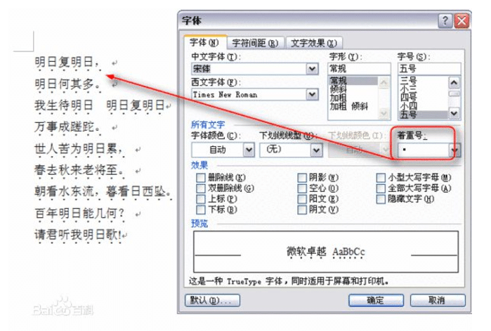 着重号 (zhuó zhòng hào) ( .)