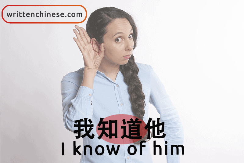 (2) 我知道他。(wǒ zhī dao tā)= I heard about him. (or I know of him)