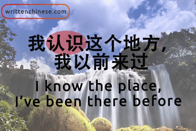 (3) 我认识这个地方,我以前来过。(wǒ rèn shi zhè ge dì fang, wǒ yǐ qián lái guò.)= I know the place, I have been there before.