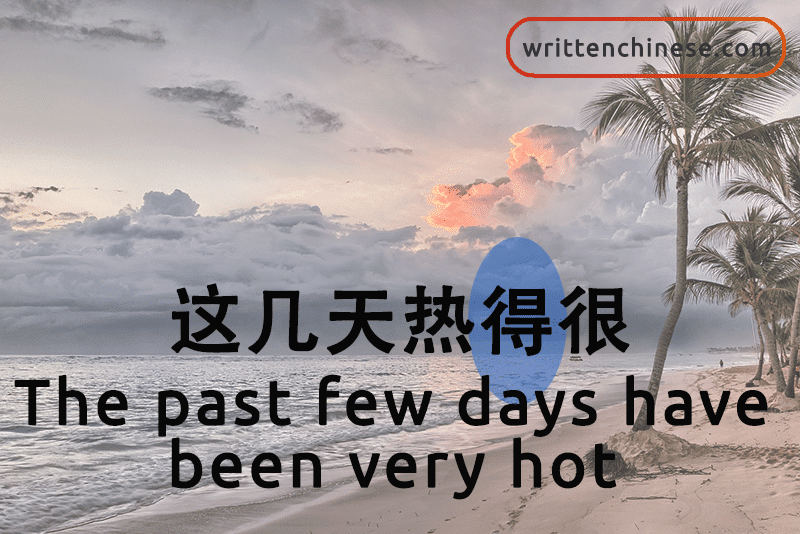这几天热得很。(zhè jǐ tiān rè de hěn) The past few days have been very hot.