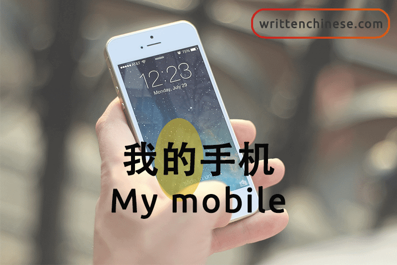 我的手机。 (wǒ de shǒu jī) My mobile.